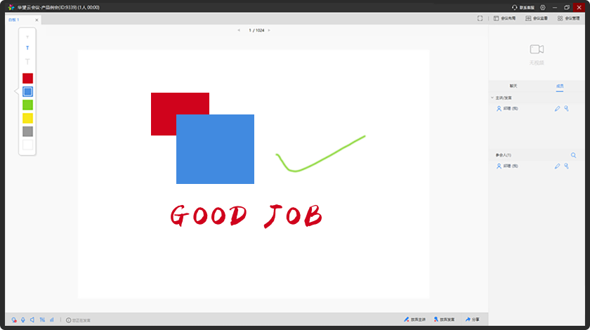 具備電子白板功能,支持畫筆、文本編輯、圖形等多種工具,支持office辦公文檔,包括word、excel、PPT、pdf,還有影音視頻文件、應(yīng)用程序共享。
